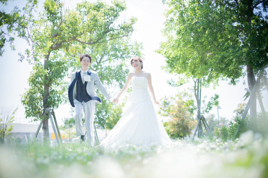 海辺、神社、庭園、公園など、ロケ地の魅力を活かした撮影を行えば、ふたりらしさを表現できる一枚に。